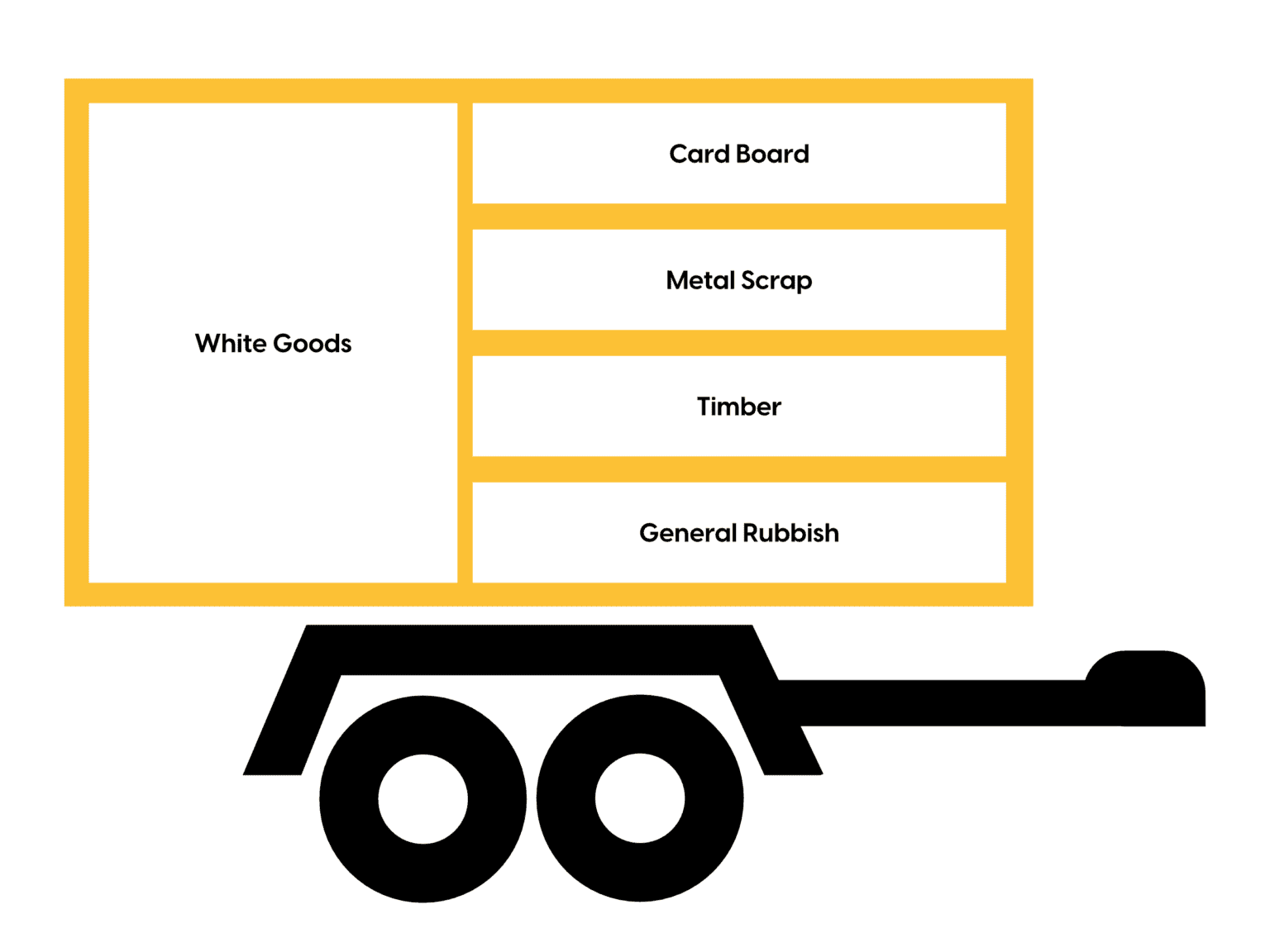 Below is a helpful guide on the best way to load your skip bin trailer. Your delivered skip bin will also have this helpful loading guide & price list inside the bin to help guide you.